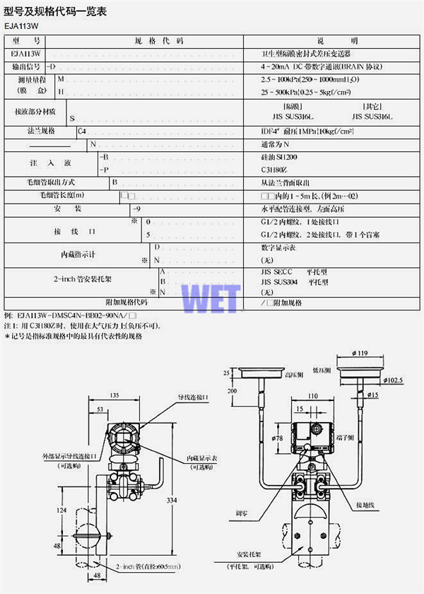 日本橫河EJA213/223衛生型液位變送器/EJA113W衛生型隔膜密封式差壓變送器/EJA433W衛生型隔膜密封式壓力變送器